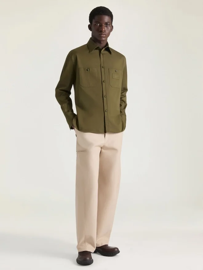 In Anlehnung an das Couture-Erbe von Givenchy ziehen die geschwungenen, umgekehrten Nähte sich über Ärmel und Hosenbeine und schaffen so eine skulpturale Silhouette. Der Givenchy Paris-Schriftzug greift Vintage-College-Referenzen auf und interpretiert klassische Schriftzüge in subtilen, kontrastreichen und gestickten Applikationen neu.Langärmliges Overshirt aus Baumwolltwill. Klassischer Kragen. Givenchy Paris-Patch aus dem gleichen Stoff auf der Brust. Knopfverschluss. Geknöpfte Manschetten. Zwei Brusttaschen.Couture-Nähte für eine abgerundete Silhouette. Locker sitzende Passform. Das Model ist 1,85 m groß und trägt Größe M. FarbeKhakiMaterial100 % Baumwolle.Pflegehinweise- Waschen bei maximal 30 °C, Schonwaschgang- Bügeln bei maximaler Bügeleisentemperatur (110 °C) ohne Dampf- Nicht im Wäschetrockner trocknen- Nicht bleichen- Chemische Reinigung mit Perchlorethylen und Kohlenwasserstoffen, SchonwaschgangHerkunftslandPortugalArtikelnummerBm618815Xz-305 Pflegehinweise: In unseren Werkstätten entwerfen wir mutig und kreativ einzigartige Kleidungsstücke aus hochwertigen Materialien.Um den Glanz Ihres Givenchy-Produkts zu bewahren, empfehlen wir, es in einem Staubbeutel aus Baumwolle an einem trockenen, kühlen Ort aufzubewahren. Für die meisten unserer Produkte wird eine chemische Reinigung empfohlen. Bitte beachten Sie unbedingt die Pflegehinweise auf dem Etikett Ihres Artikels. Besuchen Sie gerne unsere spezielle Seite oder wenden Sie sich direkt an unsere Givenchy-Teams, wenn Sie weitere Informationen wünschen.Maximal 30 °C waschen, SchonwaschgangBei maximaler Bügeleisentemperatur (110 °C) ohne Dampf bügelnNicht im Wäschetrockner trocknenNicht bleichenChemische Reinigung mit Perchlorethylen und Kohlenwasserstoffen, Schonwaschgang