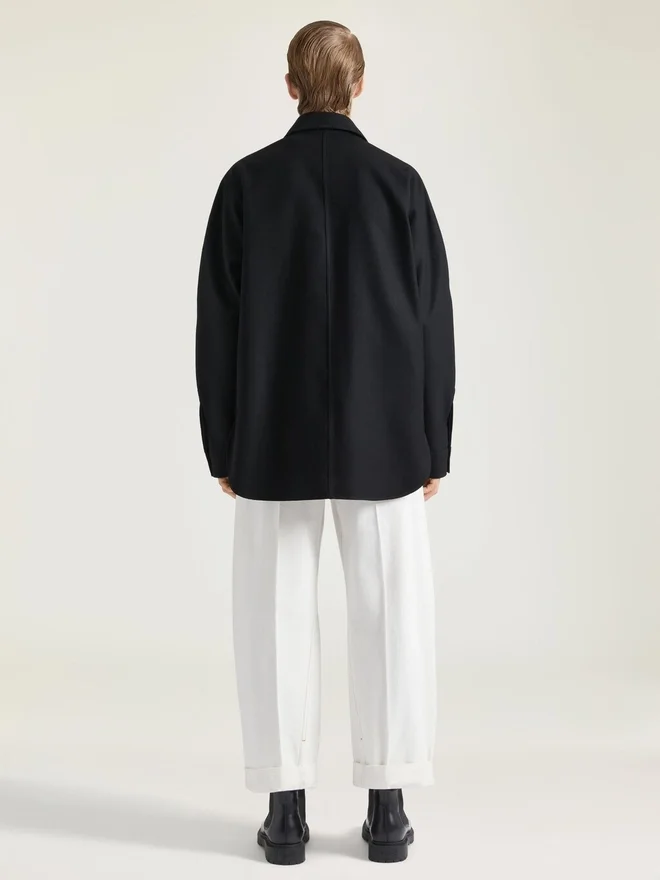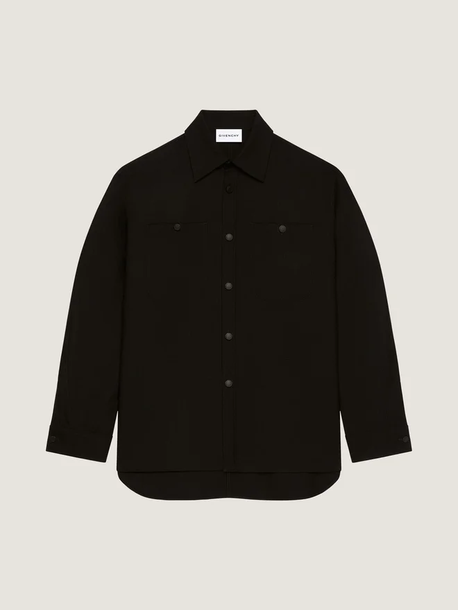 In Anlehnung an das Couture-Erbe von Givenchy ziehen geschwungene, umgekehrte Nähte an Ärmeln und Hosenbeinen verlaufende Linien und schaffen so eine skulpturale Silhouette. Overshirt aus Flanellwolle. Klassischer Kragen. Kleines Givenchy-Logo als Stickerei auf der Knopfleiste. Knopfverschluss.Geknöpfte Manschetten. Zwei Brusttaschen. Schrägnähte für einen kokonartigen Schnitt. Lässige Passform.Das Model ist 1,85 m groß und trägt Größe M.D FarbeD SchwarzD MaterialD 100 % WolleD PflegeD Nicht waschenBei maximaler Bügeleisentemperatur (110 °C) bügeln Ohne DampfNicht im Wäschetrockner trocknenNicht bleichenChemische Reinigung mit KohlenwasserstoffenHerkunftslandPortugalProduktcodeBm615714Xm-001 Pflegehinweise: In unseren Werkstätten entwerfen wir mutig und kreativ einzigartige Kleidungsstücke, die aus hochwertigen Materialien gefertigt sind. Um die Schönheit Ihres Givenchy-Produkts zu bewahren, empfehlen wir, es in einem Staubbeutel aus Baumwolle an einem trockenen, kühlen Ort aufzubewahren. Für die meisten unserer Produkte wird eine chemische Reinigung empfohlen. Bitte befolgen Sie unbedingt die Pflegehinweise auf dem Etikett Ihres Artikels. Besuchen Sie gerne unsere spezielle Seite oder wenden Sie sich direkt an unsere Givenchy-Teams, wenn Sie weitere Informationen wünschen.Nicht waschenBei maximaler Bügeleisentemperatur (110 °C) ohne Dampf bügelnNicht im Wäschetrockner trocknenNicht bleichenChemische Reinigung mit Kohlenwasserstoffen