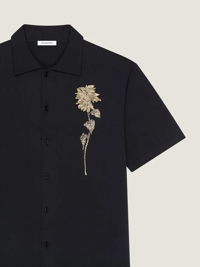 Kristalle, Perlen, Pailletten und Blumenstickereien bringen die Handwerkskunst des Ateliers in die Silhouette der Herrenmode – von raffinierter Abendgarderobe bis hin zu Alltagsmode.Kurzärmeliges Hemd aus Baumwollstrick.Klassischer Kragen.Gestickte Blume aus Steinen und Pailletten auf der Brust.Knopfverschluss.Perlmuttknöpfe. Ohne DampfFlach liegend trocknenNicht bleichenNicht chemisch reinigenHerkunftslandItalienProduktcodeBm617H4Ypv-001 Pflegehinweise: In unseren Werkstätten entwerfen wir mutig und kreativ einzigartige Kleidungsstücke, die aus hochwertigen Materialien gefertigt sind. Um die Schönheit Ihres Givenchy-Produkts zu bewahren, empfehlen wir, es in einem Staubbeutel aus Baumwolle an einem trockenen, kühlen Ort aufzubewahren. Für die meisten unserer Produkte wird eine chemische Reinigung empfohlen. Bitte befolgen Sie unbedingt die Pflegehinweise auf dem Etikett Ihres Artikels. Besuchen Sie gerne unsere spezielle Seite oder wenden Sie sich direkt an unsere Givenchy-Teams, wenn Sie weitere Informationen wünschen.Handwäsche, maximale Temperatur (40 °C)Bügeln bei maximaler Bügeleisentemperatur (110 °C) ohne DampfFlach liegend trocknenNicht bleichenNicht chemisch reinigen