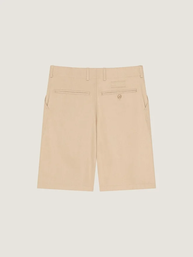 Das Givenchy-Label wird zu einer dezenten Verzierung, die auf die Kleidungsstücke geprägt, aufgenäht oder aufgestickt ist. Chino-Bermudashorts in
