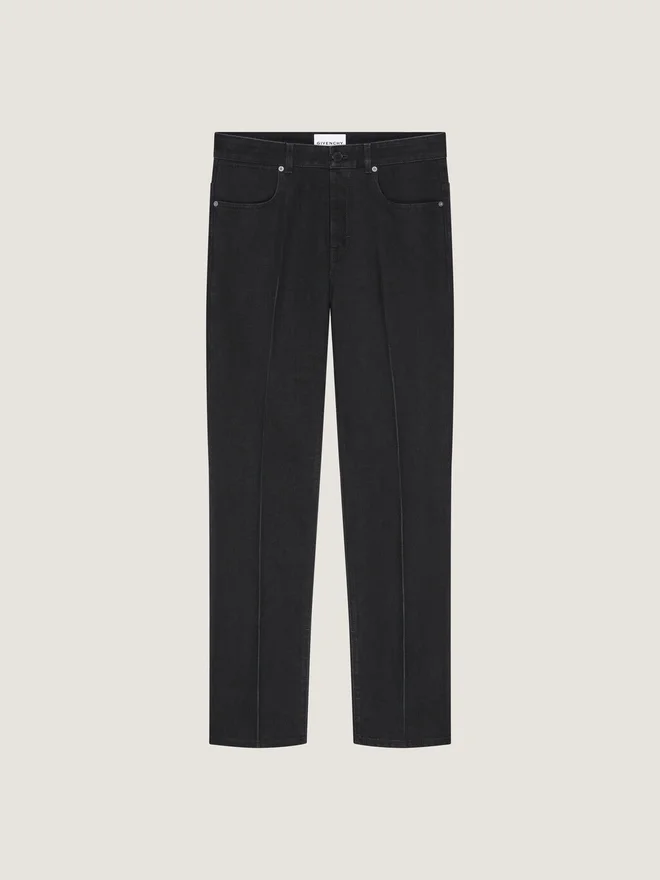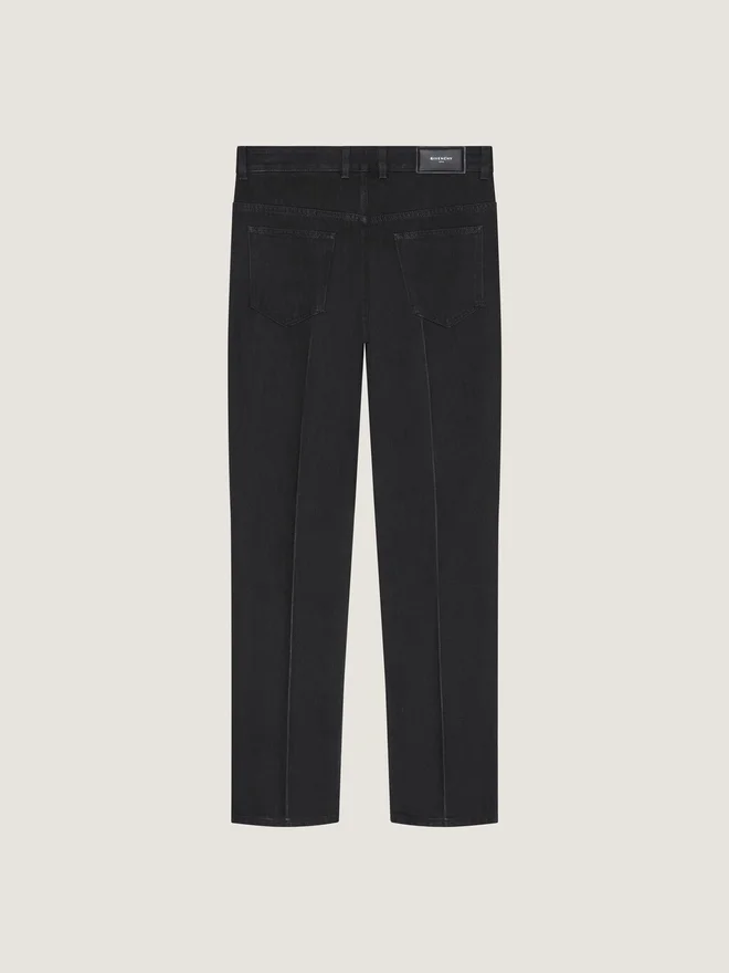Jeans.Bund mit Gürtelschlaufen, Reißverschluss und Knopfverschluss.Knopf mit Givenchy-Gravur.Givenchy-Lederpatch auf der Rückseite.Faltenoptik an den Beinen.Drei Vordertaschen.Zwei Gesäßtaschen.• Gerade Passform. • Das Model ist 1,85 m groß und trägt Größe 30. • Farbe • Schwarz • Material • 100 % Baumwolle.Pflegehinweise- Waschen bei maximal 30 °C, Schonwaschgang- Bügeln bei maximaler Bügeleisentemperatur (110 °C) Ohne DampfNicht im Wäschetrockner trocknenNicht bleichenNicht chemisch reinigenHerkunftslandItalienProduktcodeBm51Ns5Yd6-001 Pflegehinweise: In unseren Werkstätten entwerfen wir mutig und kreativ einzigartige Kleidungsstücke, die aus hochwertigen Materialien gefertigt sind. Um die Schönheit Ihres Givenchy-Produkts zu bewahren, empfehlen wir, es in einem Baumwollbeutel an einem trockenen, kühlen Ort aufzubewahren. Für die meisten unserer Produkte wird eine chemische Reinigung empfohlen. Bitte beachten Sie unbedingt die Pflegehinweise auf dem Etikett Ihres Artikels. Besuchen Sie gerne unsere spezielle Seite oder wenden Sie sich direkt an unsere Givenchy-Teams, wenn Sie weitere Informationen wünschen.Maximal 30 °C, SchonwaschgangBei maximaler Bügeleisentemperatur (110 °C) ohne Dampf bügelnNicht im Wäschetrockner trocknenNicht bleichenNicht chemisch reinigen