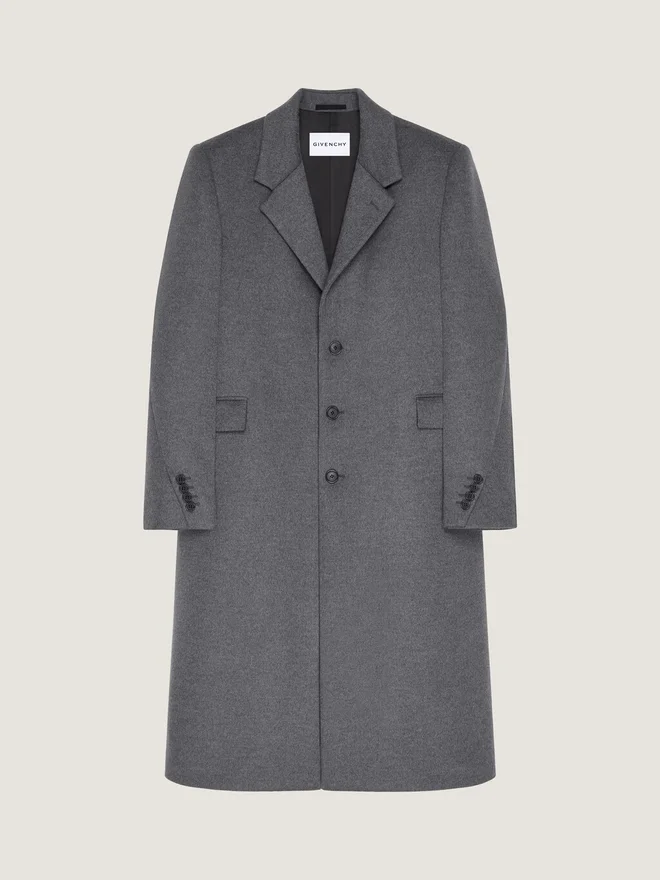 In Anlehnung an das Couture-Erbe von Givenchy ziehen sich geschwungene, umgekehrte Nähte an Ärmeln und Hosenbeinen entlang und schaffen so eine skulpturale Silhouette. Mantel aus doppelseitiger Wolle und Kaschmir. Kragen mit Kerbe. Einreihig. Geknöpfte Manschetten. Zwei Pattentaschen vorne. Satin-Futter.• Couture-Nähte für eine abgerundete Silhouette. • Lockere Passform. • Das Model ist 1,85 m groß und trägt Größe 48. Futter: 100 % Viskose.Pflege: • Nicht waschen • Bei maximaler Bügeleisentemperatur (110 °C) bügeln Ohne DampfNicht im Wäschetrockner trocknenNicht bleichenChemische Reinigung mit KohlenwasserstoffenHerkunftslandItalienProduktcodeBmc09P163S-067 Pflegehinweise: In unseren Werkstätten entwerfen wir mutig und kreativ einzigartige Kleidungsstücke, die aus hochwertigen Materialien gefertigt sind. Um die Schönheit Ihres Givenchy-Produkts zu bewahren, empfehlen wir, es in einem Staubbeutel aus Baumwolle an einem trockenen, kühlen Ort aufzubewahren. Für die meisten unserer Produkte wird eine chemische Reinigung empfohlen. Bitte beachten Sie unbedingt die Pflegehinweise auf dem Etikett Ihres Artikels. Besuchen Sie gerne unsere spezielle Seite oder wenden Sie sich direkt an unsere Givenchy-Teams, wenn Sie weitere Informationen wünschen.Nicht waschenBei maximaler Bügeleisentemperatur (110 °C) ohne Dampf bügelnNicht im Wäschetrockner trocknenNicht bleichenChemische Reinigung mit Kohlenwasserstoff