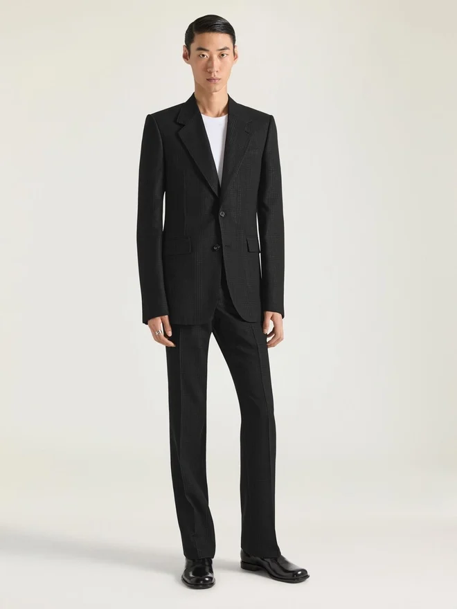 Eine gerade Silhouette mit Regular Fit und klarer Taillenlinie, die Struktur und Modernität in Einklang bringt.- Strukturierte Karojacke aus Wollvoile. – fallendes Revers. – Einreihig. – Geknöpfte Manschetten. – Hornknöpfe. – Eine Brusttasche. – Zwei Pattentaschen vorne.• Taillierter Schnitt. • Halbgefüttert mit kariertem Futter. • Das Model ist 1,85 m groß und trägt Größe 48. D FarbeD Schwarz/GrauD MaterialzusammensetzungD 71 % Wolle, 29 % Polyester.D Futter am Körper: 100 % Cupro. Futter an den Ärmeln: 100 % Viskose.PflegehinweiseNicht waschenBei maximaler Bügeleisentemperatur (110 °C) bügeln Ohne DampfNicht im Wäschetrockner trocknenNicht bleichenChemische Reinigung mit KohlenwasserstoffenHerkunftslandItalienProduktcodeBm30Lt1Yj8-002 Pflegehinweise: In unseren Werkstätten entwerfen wir mutig und kreativ einzigartige Kleidungsstücke, die aus hochwertigen Materialien gefertigt sind. Um den Glanz Ihres Givenchy-Produkts zu bewahren, empfehlen wir, es in einem Staubbeutel aus Baumwolle an einem trockenen, kühlen Ort aufzubewahren. Für die meisten unserer Produkte wird eine chemische Reinigung empfohlen. Bitte beachten Sie unbedingt die Pflegehinweise auf dem Etikett Ihres Artikels. Besuchen Sie gerne unsere spezielle Seite oder wenden Sie sich direkt an unsere Givenchy-Teams, wenn Sie weitere Informationen wünschen.Nicht waschenBei maximaler Bügeleisentemperatur (110 °C) ohne Dampf bügelnNicht im Wäschetrockner trocknenNicht bleichenChemische Reinigung mit Kohlenwasserstoffen