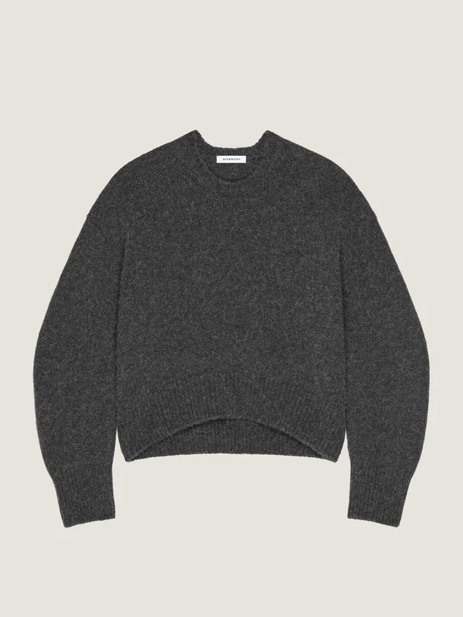 In Anlehnung an das Couture-Erbe von Givenchy ziehen die geschwungenen, umgekehrten Nähte sich über Ärmel und Hosenbeine und schaffen so eine skulpturale Silhouette. Langärmeliger Pullover aus Alpaka- und Yakwolle. Rundhalsausschnitt. Givenchy Paris Gros Grain am oberen Rücken.• Couture-Nähte für eine abgerundete Silhouette. • Lockere Passform. • Das Model ist 1,85 m groß und trägt Größe M. D FarbeD Grau meliertD MaterialD 53 % Alpakawolle, 47 % Yakwolle.D Ärmel: 50 % Alpaka-Wolle, 46 % Yak-Wolle, 4 % Polyamid.Pflege: • Nicht waschen • Bei maximaler Bügeleisentemperatur (110 °C) bügeln Ohne DampfNicht im Wäschetrockner trocknenNicht bleichenChemische Reinigung mit KohlenwasserstoffenHerkunftslandItalienProduktcodeBm90Wn4Ynz-067 Pflegehinweise: In unseren Werkstätten entwerfen wir mutig und kreativ einzigartige Kleidungsstücke, die aus hochwertigen Materialien gefertigt sind. Um die Schönheit Ihres Givenchy-Produkts zu bewahren, empfehlen wir, es in einem Staubbeutel aus Baumwolle an einem trockenen, kühlen Ort aufzubewahren. Für die meisten unserer Produkte wird eine chemische Reinigung empfohlen. Bitte beachten Sie unbedingt die Pflegehinweise auf dem Etikett Ihres Artikels. Besuchen Sie gerne unsere spezielle Seite oder wenden Sie sich direkt an unsere Givenchy-Teams, wenn Sie weitere Informationen wünschen.Nicht waschenBei maximaler Bügeleisentemperatur (110 °C) ohne Dampf bügelnNicht im Wäschetrockner trocknenNicht bleichenChemische Reinigung mit Kohlenwasserstoffen