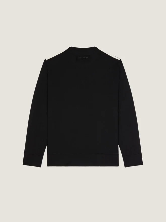 Das Givenchy-Label wird zu einem dezenten Schmuckelement, das als Prägung, Naht oder Stickerei auf den Kleidungsstücken angebracht ist. Langärmeliger Pullover aus Wolle. Rundhalsausschnitt. Givenchy Paris-Label im oberen Rückenbereich. Kontrastierende Grosgrain-Einsätze an den Schultern.Gerippter Kragen, Saum und Ärmelbündchen. Farbe Schwarz Material 100 % Wolle Pflege Nicht waschen Bügeln bei maximaler Bügeleisentemperatur (110 °C) Ohne DampfFlach liegend trocknenNicht bleichenChemische Reinigung mit KohlenwasserstoffenHerkunftslandItalienProduktcodeBm90Wy4Ypg-001 Pflegehinweise: In unseren Werkstätten entwerfen wir mutig und kreativ einzigartige Kleidungsstücke, die aus hochwertigen Materialien gefertigt sind. Um den Glanz Ihres Givenchy-Produkts zu bewahren, empfehlen wir, es in einem Staubbeutel aus Baumwolle an einem trockenen, kühlen Ort aufzubewahren. Für die meisten unserer Produkte wird eine chemische Reinigung empfohlen. Bitte beachten Sie unbedingt die Pflegehinweise auf dem Etikett Ihres Artikels. Besuchen Sie gerne unsere spezielle Seite oder wenden Sie sich direkt an unsere Givenchy-Teams, wenn Sie weitere Informationen wünschen.Nicht waschenBei maximaler Bügeleisentemperatur (110 °C) ohne Dampf bügelnFlach liegend trocknenNicht bleichenChemische Reinigung mit Kohlenwasserstoff