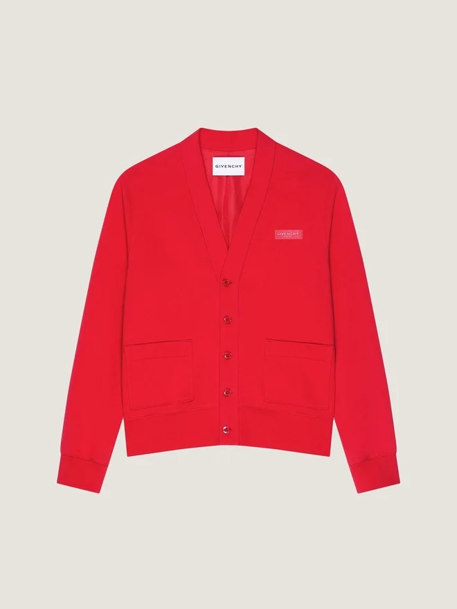 Das Givenchy Paris-Logo greift Vintage-College-Referenzen auf und interpretiert klassische Schriftzüge in subtilen, kontrastreichen und gestickten Applikationen neu.Langärmelige Strickjacke aus Baumwolle.V-Ausschnitt.„Givenchy Paris“ in Grosgrain-Stickerei auf der Brust.Knopfverschluss.Zwei Vordertaschen.• Gerippter Kragen, Saum und Ärmelbündchen. • Futter mit durchgehendem Givenchy Paris-Jacquard. • Das Model ist 1,85 m groß und trägt Größe M. D FarbeD ZinnoberrotD MaterialD 100 % BaumwolleD FutterD 100 % CuproD PflegehinweiseD Nicht waschenD Bügeln bei maximaler Bügeleisentemperatur (110 °C)D FutterD 100 % CuproD MaßeD Länge: 76 cmD Ärmellänge: 61 cmD Brustweite: 81 cmD Taillenweite: 81 cmD Sitzhöhe: 26 cmD Sitzbreite: 56 cmD Sitzlänge: 61 cmD Sitzhöhe: 26 cmD Sitzbreite: 56 cmD Sitzlänge: 61 cmD Sitzhöhe: 26 cmD Sitzbreite: 56 cmD Sitzlänge: 61 cmD Futter: 100 % Cupro.Pflegehinweise: • Nicht waschen • Bei maximaler Bügeleisentemperatur (110 °C) bügeln Ohne DampfNicht im Wäschetrockner trocknenNicht bleichenChemische Reinigung mit KohlenwasserstoffenHerkunftslandPortugalProduktcodeBmk00W3Ysk-640 Pflegehinweise: In unseren Werkstätten entwerfen wir mutig und kreativ einzigartige Kleidungsstücke, die aus hochwertigen Materialien gefertigt sind. Um den Glanz Ihres Givenchy-Produkts zu bewahren, empfehlen wir, es in einem Staubbeutel aus Baumwolle an einem trockenen, kühlen Ort aufzubewahren. Für die meisten unserer Produkte wird eine chemische Reinigung empfohlen. Bitte befolgen Sie unbedingt die Pflegehinweise auf dem Etikett Ihres Artikels. Besuchen Sie gerne unsere spezielle Seite oder wenden Sie sich direkt an unsere Givenchy-Teams, wenn Sie weitere Informationen wünschen.Nicht waschenBei maximaler Bügeleisentemperatur (110 °C) ohne Dampf bügelnNicht im Wäschetrockner trocknenNicht bleichenChemische Reinigung mit Kohlenwasserstoffen