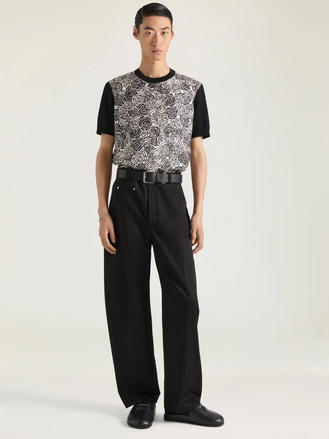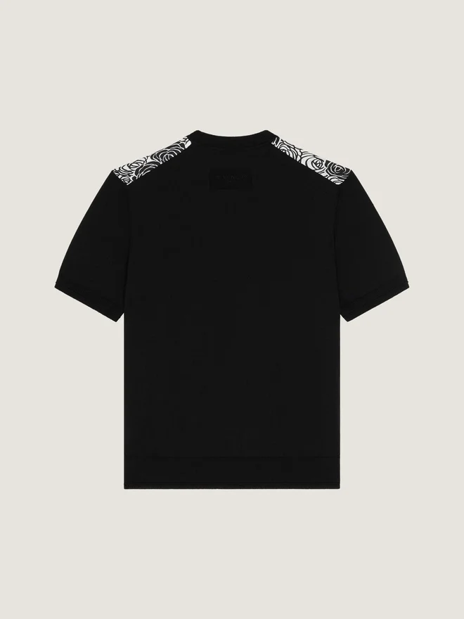 Dieser Blumenprint, der einem Schal aus dem Archiv von Hubert de Givenchy entstammt, greift das Erbe des Hauses in zeitgenössischen grafischen Formen wieder auf. Kurzärmeliges T-Shirt aus Baumwollstrick. Seidenbesätze auf der Vorderseite mit Blumenprint. Rundhalsausschnitt.• Givenchy Paris-Label oben am Rücken. • Das Model ist 1,85 m groß und trägt Größe M. D FarbeD Schwarz/ElfenbeinD MaterialD 100 % Baumwolle.D ZusatzmaterialD 100 % Seide.D FutterD 100 % Polyester.D PflegehinweiseD • Nicht bleichenD • Chemische Reinigung mit Perchlorethylen und Kohlenwasserstoffen, SchonwaschgangD Zusatzmaterial: 100 % Seide. Futter: 100 % Polyester.PflegehinweiseNicht waschenBei maximaler Bügeleisentemperatur (110 °C) bügeln Ohne DampfNicht im Wäschetrockner trocknenNicht bleichenChemische Reinigung mit KohlenwasserstoffenHerkunftslandItalienProduktcodeBm90Wc4Yny-076 Pflegehinweise: In unseren Werkstätten entwerfen wir mutig und kreativ einzigartige Kleidungsstücke, die aus hochwertigen Materialien gefertigt sind. Um den Glanz Ihres Givenchy-Produkts zu bewahren, empfehlen wir, es in einem Staubbeutel aus Baumwolle an einem trockenen, kühlen Ort aufzubewahren. Für die meisten unserer Produkte wird eine chemische Reinigung empfohlen. Bitte beachten Sie unbedingt die Pflegehinweise auf dem Etikett Ihres Artikels. Besuchen Sie gerne unsere spezielle Seite oder wenden Sie sich direkt an unsere Givenchy-Teams, wenn Sie weitere Informationen wünschen.Nicht waschenBei maximaler Bügeleisentemperatur (110 °C) ohne Dampf bügelnNicht im Wäschetrockner trocknenNicht bleichenChemische Reinigung mit Kohlenwasserstoffen