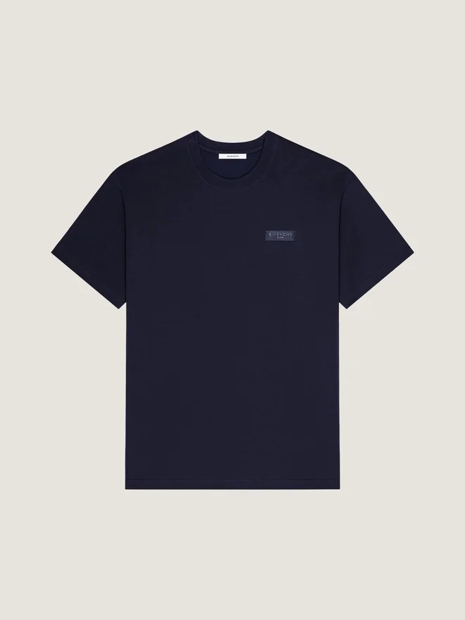 Das Givenchy-Label wird zu einem dezenten Schmuckelement, das als Prägung, Naht oder Stickerei auf den Kleidungsstücken angebracht ist. Kurzärmeliges T-Shirt aus Baumwolle.• Rundhalsausschnitt. • Givenchy Paris Gros Grain auf der Brust. • Das Model ist 1,85 m groß und trägt Größe M. D FarbeD DunkelblauD MaterialD 100 % BaumwolleD Pflegehinweise- Waschen bei maximal 30 °C, Schonwaschgang- Bügeln bei maximaler Bügeleisentemperatur (110 °C) Ohne DampfNicht im Wäschetrockner trocknenNicht bleichenNicht chemisch reinigenHerkunftslandPortugalArtikelnummerBm71Nk3Ysj-499 Pflegehinweise: In unseren Werkstätten entwerfen wir mutig und kreativ einzigartige Kleidungsstücke, die aus hochwertigen Materialien gefertigt sind. Um die Schönheit Ihres Givenchy-Produkts zu bewahren, empfehlen wir, es in einem Staubbeutel aus Baumwolle an einem trockenen, kühlen Ort aufzubewahren. Für die meisten unserer Produkte wird eine chemische Reinigung empfohlen. Bitte beachten Sie unbedingt die Pflegehinweise auf dem Etikett Ihres Artikels. Besuchen Sie gerne unsere spezielle Seite oder wenden Sie sich direkt an unsere Givenchy-Teams, wenn Sie weitere Informationen wünschen.Maximal 30 °C, SchonwaschgangBei maximaler Bügeleisentemperatur (110 °C) ohne Dampf bügelnNicht im Wäschetrockner trocknenNicht bleichenNicht chemisch reinigen