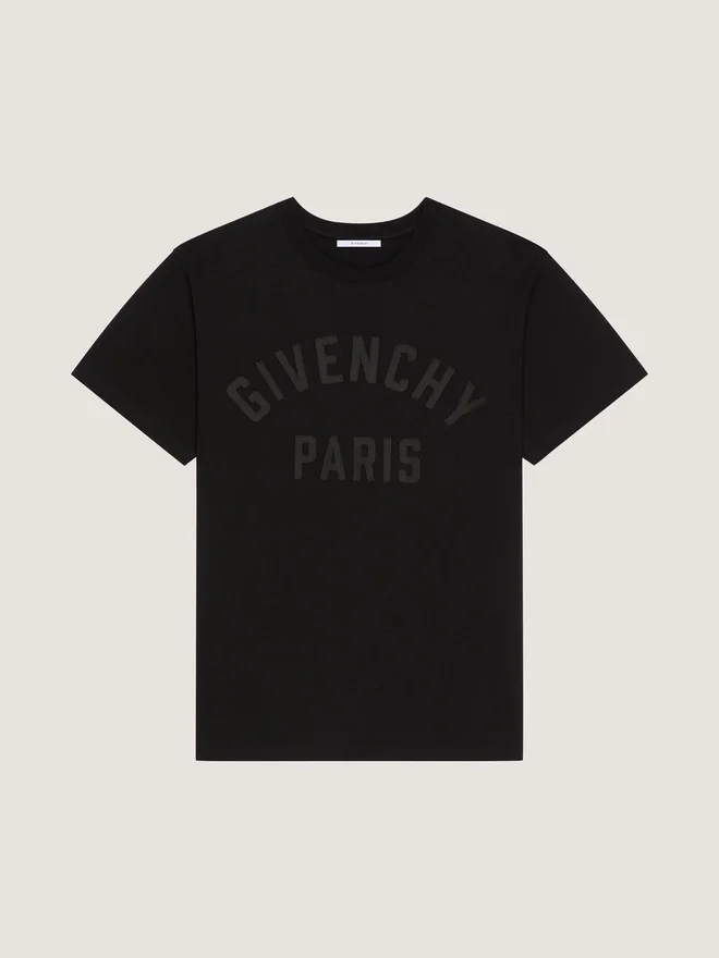 Das Givenchy Paris-Logo greift Vintage-College-Referenzen auf und interpretiert klassische Schriftzüge auf subtile, kontrastreiche und