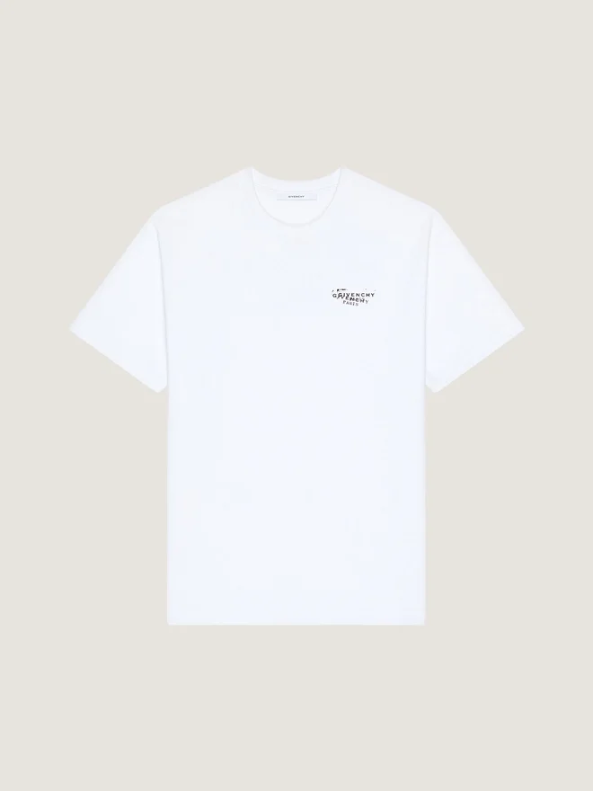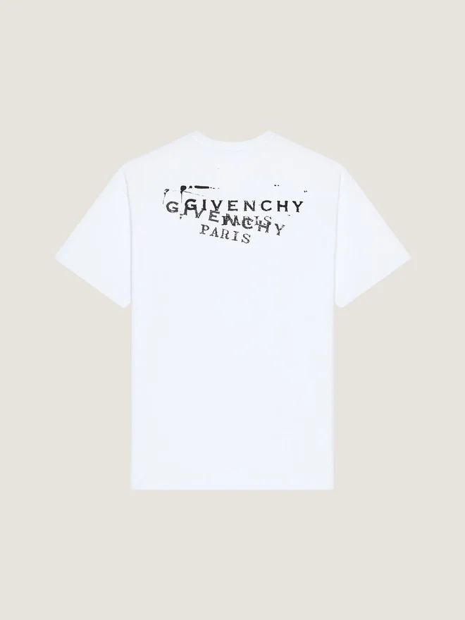 Der Givenchy-Stempel ist ein authentisches Motiv, das von Einladungen zu Haute-Couture-Shows im historischen Hotel Caraman, 3 Avenue George V, dem Pariser Stammhaus von Givenchy, stammt. Kurzärmeliges T-Shirt aus Baumwolle. Rundhalsausschnitt. Kleiner Givenchy-Stempel-Print auf der Brust.• Givenchy-Stempel-Print auf der Rückseite. Ohne DampfNicht im Wäschetrockner trocknenNicht bleichenNicht chemisch reinigenHerkunftslandPortugalArtikelnummerBm71Nk3Ysa-100 Pflegehinweise: In unseren Werkstätten entwerfen wir mutig und kreativ einzigartige Kleidungsstücke, die aus hochwertigen Materialien gefertigt sind. Um die Schönheit Ihres Givenchy-Produkts zu bewahren, empfehlen wir, es in einem Staubbeutel aus Baumwolle an einem trockenen, kühlen Ort aufzubewahren. Für die meisten unserer Produkte wird eine chemische Reinigung empfohlen. Bitte beachten Sie unbedingt die Pflegehinweise auf dem Etikett Ihres Artikels. Besuchen Sie gerne unsere spezielle Seite oder wenden Sie sich direkt an unsere Givenchy-Teams, wenn Sie weitere Informationen wünschen.Maximal 30 °C, SchonwaschgangBügeln bei maximaler Bügeleisentemperatur (110 °C) ohne DampfNicht im Wäschetrockner trocknenNicht bleichenNicht chemisch reinigen