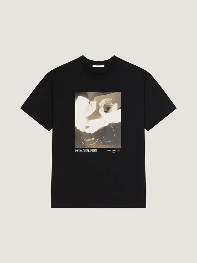 Surrealistische Drucke auf Handschuhen und Accessoires aus der Givenchy-Winterkollektion 2025 spiegeln die kulturellen Referenzen und Objekte wider, die Sarah Burtons Entwürfe prägen. Kurzärmeliges T-Shirt aus Baumwolle.• Rundhalsausschnitt. • Surrealistischer Print auf der Vorderseite. • Kleiner Givenchy Paris-Schriftzug auf der Vorderseite. • Das Model ist 1,85 m groß und trägt Größe M. D FarbeD SchwarzD MaterialD 100 % BaumwolleD Pflegehinweise- Waschen bei maximal 30 °C, Schonwaschgang- Bügeln bei maximaler Bügeleisentemperatur (110 °C) Ohne DampfNicht im Wäschetrockner trocknenNicht bleichenNicht chemisch reinigenHerkunftslandPortugalProduktcodeBm71Nk3Ysq-001 Pflegehinweise: In unseren Werkstätten entwerfen wir mutig und kreativ einzigartige Kleidungsstücke, die aus hochwertigen Materialien gefertigt sind. Um die Schönheit Ihres Givenchy-Produkts zu bewahren, empfehlen wir, es in einem Staubbeutel aus Baumwolle an einem trockenen, kühlen Ort aufzubewahren. Für die meisten unserer Produkte wird eine chemische Reinigung empfohlen. Bitte beachten Sie unbedingt die Pflegehinweise auf dem Etikett Ihres Artikels. Besuchen Sie gerne unsere spezielle Seite oder wenden Sie sich direkt an unsere Givenchy-Teams, wenn Sie weitere Informationen wünschen.Maximal 30 °C, SchonwaschgangBei maximaler Bügeleisentemperatur (110 °C) ohne Dampf bügelnNicht im Wäschetrockner trocknenNicht bleichenNicht chemisch reinigen
